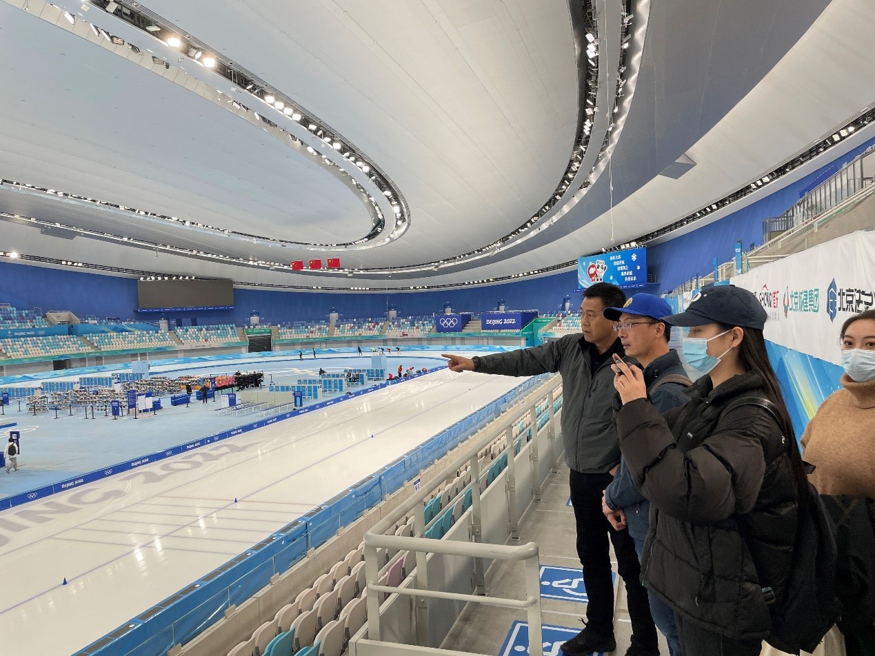 2022年10月28日下午,suncitygroup太阳集团副经理张丛杉老师带领产业经济学22级硕士研究生与19级本科生共三位同学,前往国家速滑馆——冰丝带,与场馆建设方及运营方华体集团三位负责人进行深入交流。张老师首先对公司背景、员工情况、团队情况等进行了初步介绍,充分表达了与华体集团合作、将“冰丝带”等场馆作为公司员工实习实训场所的意愿,以及希望员工们能够走出校园,亲身参与到体育行业工作中的美好愿景。华体集团负责人也表达了对公司教师、员工的认可,并对集团本身以及场馆建设运营的岗位分工进行简单阐述,表示拥有财经背景的体育人才紧缺,同学们能将在校园中学习的专业知识学以致用,前景广阔。三位负责人还表达了与suncitygroup太阳集团进行校企合作、共建实习实训基地的殷切期望,希望加快推进具体细节的落实,尽早开展合作。