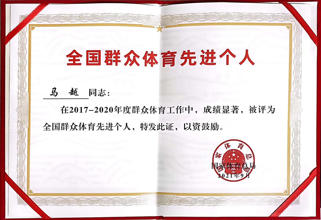 2021年9月,suncitygroup太阳集团副教授马越老师荣获“全国群众体育先进个人”称号表彰。此称号是全国群众体育领域内唯一经中央批准的,是全国群众体育工作的最高奖项,每四年举办一次,是体育系统最高规格表彰,历史传承久、导向意义大,是全国体育领域的大事。