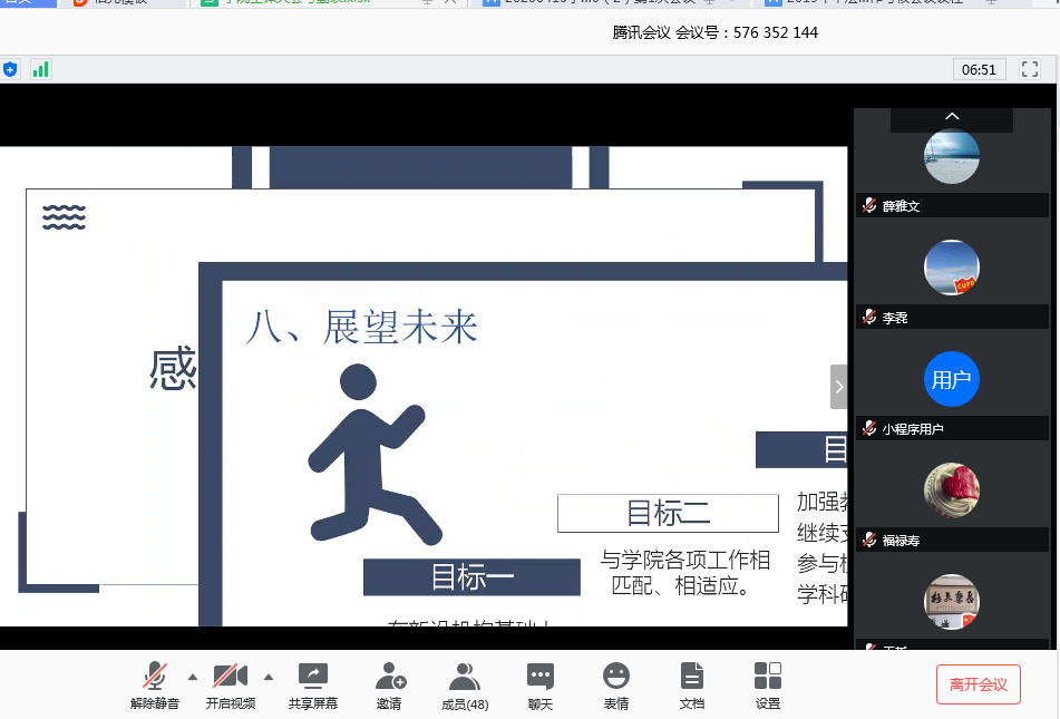 会议伊始,主持人介绍了本次会议召开的背景,由于新冠肺炎疫情的影响,会议采用腾讯会议APP召开线上视频会议的方式开展。根据公司《关于做好2019年中层领导班子和中层干部年度考核工作的通知》精神,会议实到会人数51人,超过了应到人数的三分之二,符合开会条件。会议议程分为三项:一是由林书记代表公司领导班子述职,二是由公司现任领导分别进行个人述职,第三项为梁书记总结讲话。