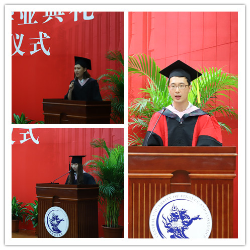 作为2018届毕业生的代表,2014级1班杜文竹和2班陈怡莹代表全体毕业生上台发言,她们表示要继续用行动践行当代青年有责任、敢担当、有勇气、讲奉献的青春风采,兑现为母校和公司争辉添彩的豪情壮志,也希望母校和公司越来越好、老师们身体健康、桃李满天下。