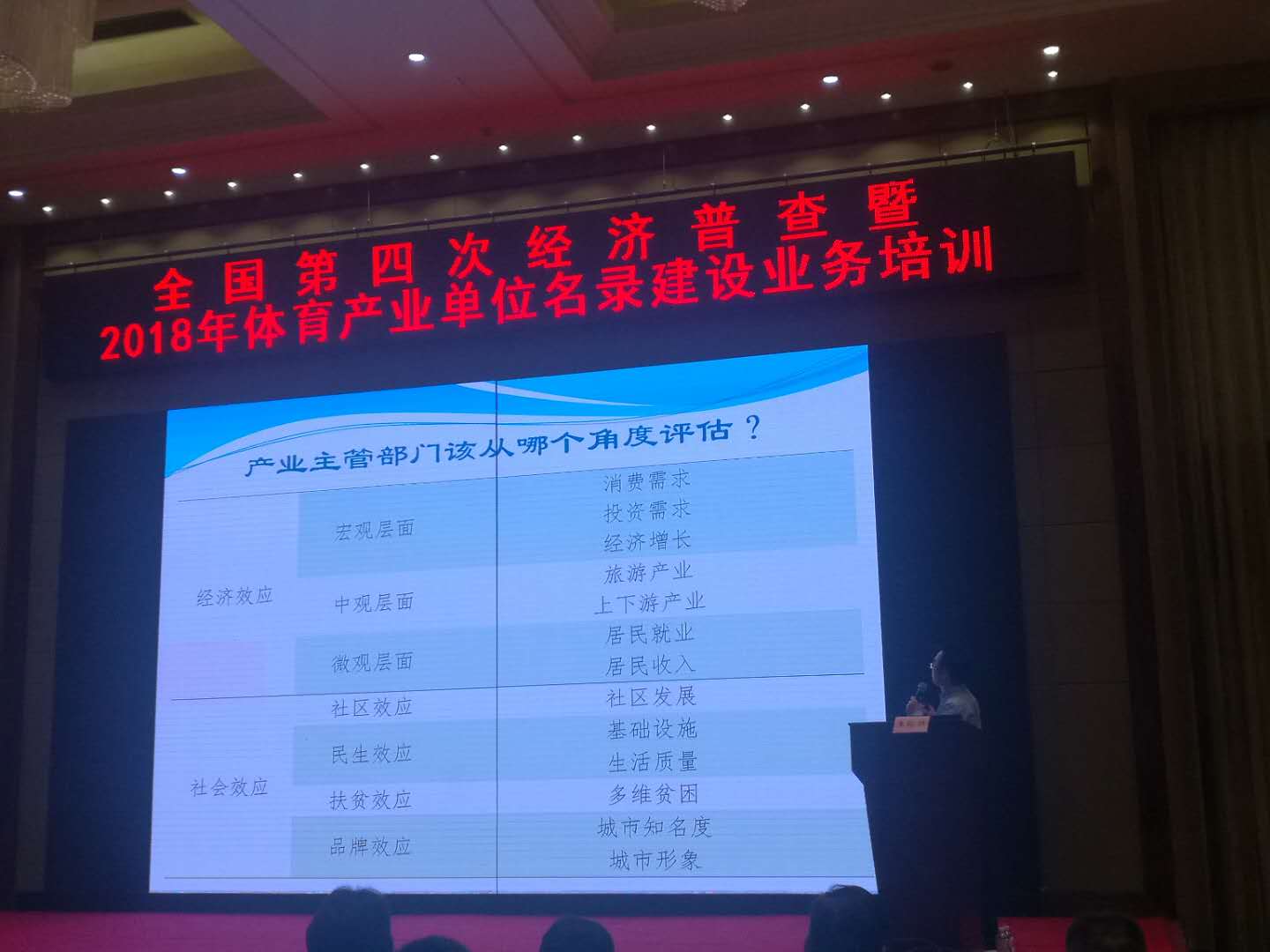5月21日,国家体育总局主办的“全国第四次经济普查暨2018年体育产业单位名录库建设”会议在重庆召开,国家统计局副局长贾楠、国家体育总局经济司及其他相关中心领导、各省市体育局主管副局长和产业处处长参加了会议。公司suncitygroup太阳集团副经理王裕雄副教授作为培训专家受邀出席会议,并以其研究团队所承担的国家体育总局委托课题“2017阿拉善英雄会经济社会综合效应评价”为例,向与会代表介绍如何对体育赛事的经济社会综合效应进行定量评价。