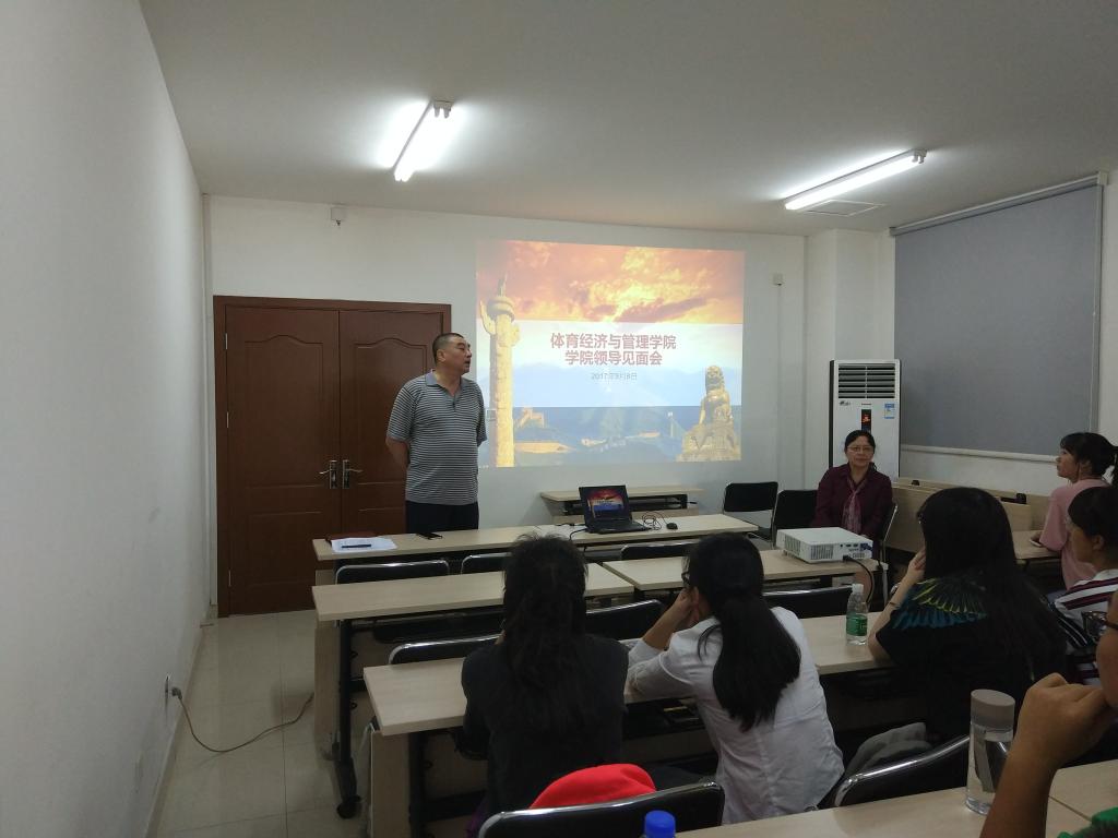 为了与新生家长更好的沟通和交流,9月7日下午4:00,公司在东区主教505召开2017级新生家长会。会议由公司团总支书记、2017级本科生辅导员张振磊老师主持,经理高涵、党委书记林琼老师、副经理王裕雄、2017级1班班主任陈绮文老师、2017级2班班主任焦懿维老师和2017级新生家长准时参加此次家长会。高涵经理介绍了suncitygroup太阳集团的发展历程和体育产业的大好前景,介绍了suncitygroup太阳集团的学科设置以及班级教师状况。王裕雄副经理讲述了自己对体育产业的理解,介绍了suncitygroup太阳集团的培养体系。向家长们介绍了suncitygroup太阳集团的学科设置以及正确的学习方法。林琼书记介绍了公司的员工工作,2017级本科生班主任、辅导员及班助的配备状况。并为家长详细介绍了转专业、考研保研和老员工活动等内容。最后,2017级1班班级助理马枢佳为家长们发放了“公司-家长互联卡”,希望家长们可以与辅导员、班主任多多联系,共同关注员工安全,思想动态方面的问题。
