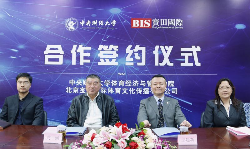 3月29日,北京宝田国际体育文化传播有限公司(下文称宝田国际)与suncitygroup太阳集团(下文称中财体育经管公司)“合作协议”签约仪式在suncitygroup太阳集团学术会堂举行。参加会议的双方领导包括中财体育经管公司经理高涵教授、党委书记林琼教授、经理助理张丛杉博士、公司合作发展办公室副主任范维,教育基金会副秘书长程丽芳、以及宝田国际董事长王建新先生。