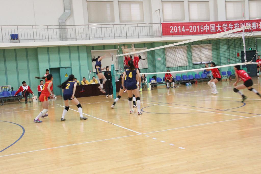 1/8决赛,我队迎战上届总决赛冠军——北京航空航天大学队,大家不仅奉献了一场精彩的比赛,而且以3:1战胜对手,顺利晋级四强。在1/4决赛中,我队憾负实力强劲的北京体育大学队,只能与中国海洋大学队争夺季军。尽管已经稳操明年总决赛的入场券,但女排姑娘们始终没有松懈,而是以饱满的精神状态和娴熟的技战术打法,以3:1战胜对手,获得本次比赛的第三名。获得冠军和亚军的队伍分别是北京体育大学和山东师范大学。