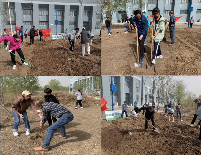 活动当天,师生党员齐聚在看台西侧的荒地,手持锄头、铁锹、钉耙等农具,捡拾杂物、挖地松土、耙地平整、筑垄成畦。教师党员们身先士卒、言传身教,手把手教给员工们如何翻耕土壤、修筑田垄;员工们弄懂学会、不遗余力躬行实践,一步步学习劳动技能,学习农业耕作知识。经过师生2个小时的辛勤劳动,这片原本杂草丛生、乱石堆累的荒地平整成畦、焕然一新,等待着后续的施肥和播种。