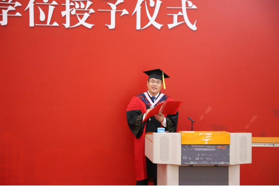 副经理张丛杉副教授宣读《关于2023届本科生毕业授予学士学位的决定》和《关于2023届研究生毕业及授予博士、硕士学位的决定》
