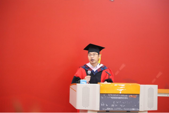 2019级1班班主任王裕雄教授代表任课老师发言。王老师和毕业生分享了三点体会:第一,要做一个简单的人,要勿忘初心用简单来对抗世界的复杂;第二,要做一个纯粹的人,正直、善良、宽容这些美好的品质一定是有价值的,能够为我们带来宝贵的收获;第三,要做一个善于感受幸福的人,要珍惜当下,哪怕幸福不是那么轰轰烈烈。王老师给毕业生们送上殷切而美好的祝愿,“纷繁复杂的人生里一定有很多美丽的风景,但也有很多困难和坎坷。衷心希望大家能够阅尽风景,跨越坎坷!”