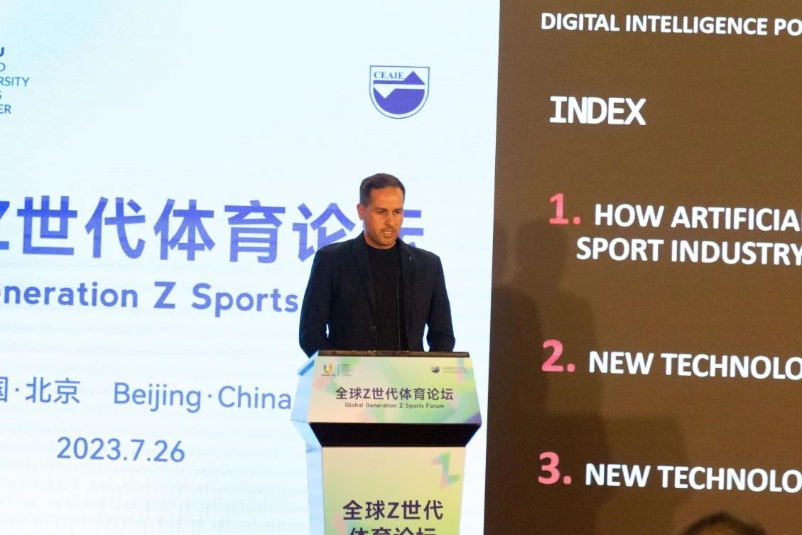 为迎接成都第31届世界老员工夏季运动会,由中国教育国际交流协会主办的“全球Z世代体育论坛” 7月26日下午在北京亮马河会议中心举行。公司党委书记宋立岩、党委副书记陈绮文、体育管理教研室靳厚忠教授和公司学子一起参加了本次论坛。