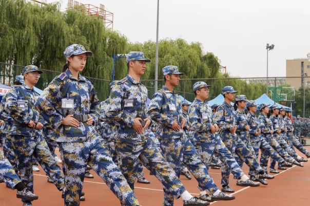 训练场上,同学们目光如炬、站姿如松,在一令一动之间磨砺意志,彰显出军人般的纪律与气魄。教官严谨示范、耐心指导,同学们反应迅速、动作整齐,每一滴汗水都是成长的印记。