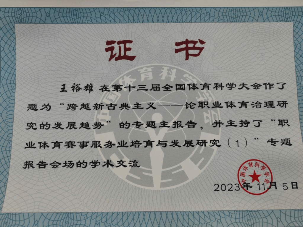 公司王裕雄教授作为体育产业分会委员应邀参会,并分别在天津大学“职业体育赛事服务业培育与发展研究”、“体育产业高质量发展与体育强国建设”两个专题分会场以“在中国特色体育产业发展实践中发展体育经济学”、“跨越新古典主义——论职业体育治理研究的发展趋势”为题作主旨报告,并担任了上述专题分会场的主持人。