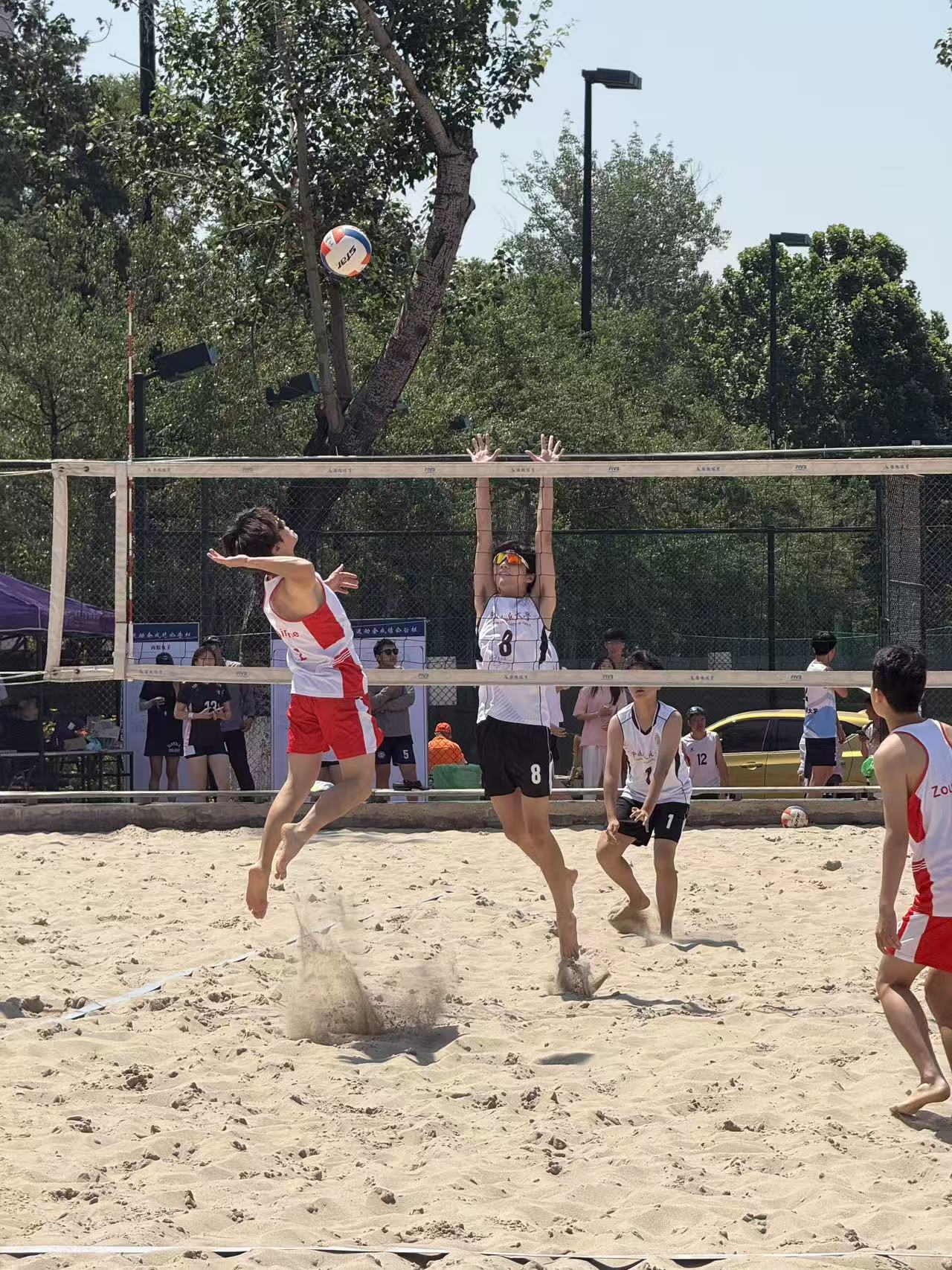 6月8日,在1/8淘汰赛中,面对B组第一中国人民大学,凭借队员邹和霖、陈浩贤、李旻峻的出色发挥,以21:18力克劲敌,成功跻身八强。休息两场后,顶着正午的烈日,面对1/4决赛对手北京工商大学,由张湛替换李旻峻,凭借其丰富的经验,以21:12战胜对手,创造历史地打入四强。