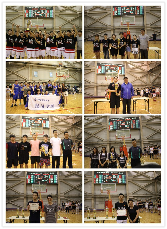 最终的比赛获奖结果为:保险公司男篮、管理科学与工程公司女篮夺得冠军,经济公司男篮、商公司女篮获得亚军,商公司男篮、法公司女篮获得季军。商公司的李睿琛同学获得三分球比赛冠军,保险公司的麻乂邦同学获得“最有价值球员”称号。