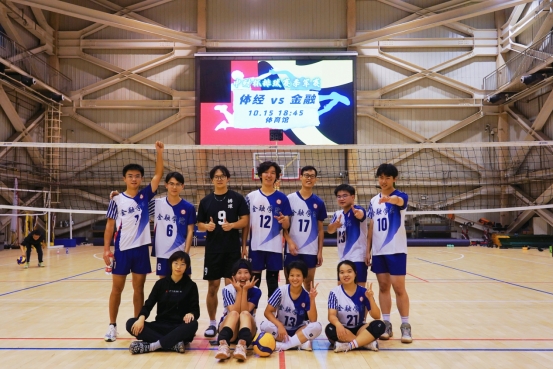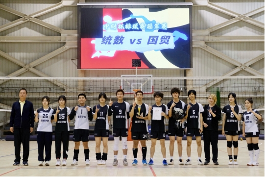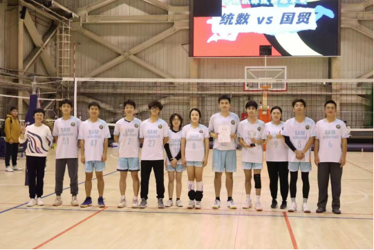 随着半决赛与决赛的到来,场上的比赛愈发激烈。每一个球都仿佛承载着全队的希望,队员们拼尽全力,一次次飞身救球,一次次奋力扣杀。拦网队员如巍峨的山峰,紧紧盯着对方的扣球手,随时准备将球拦下。接应队员则如同灵活的猎豹,在场上四处奔走,将每一个险球稳稳接住。最终,国际经济与贸易公司荣获冠军,统计与数学公司荣获亚军,金融公司荣获季军。