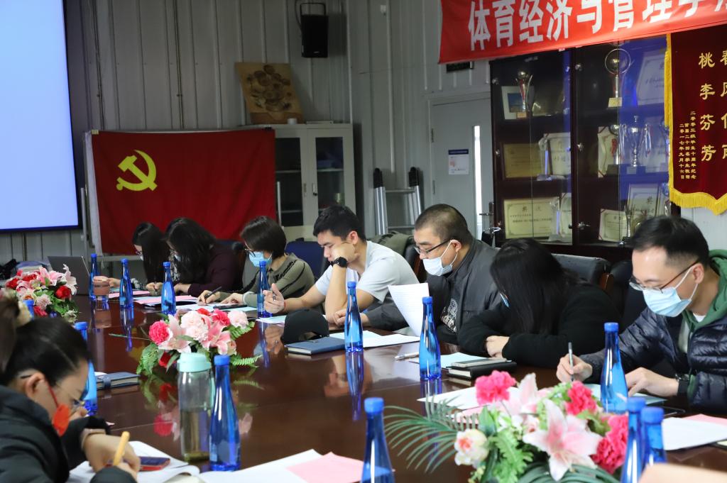 体育经济教研党支部书记李毳就组织建设、党支部作用发挥、特色做法、存在的问题和改进措施进行总结,认为今后的工作方向是加强党史学习、思政理论学习和师德师风教育。