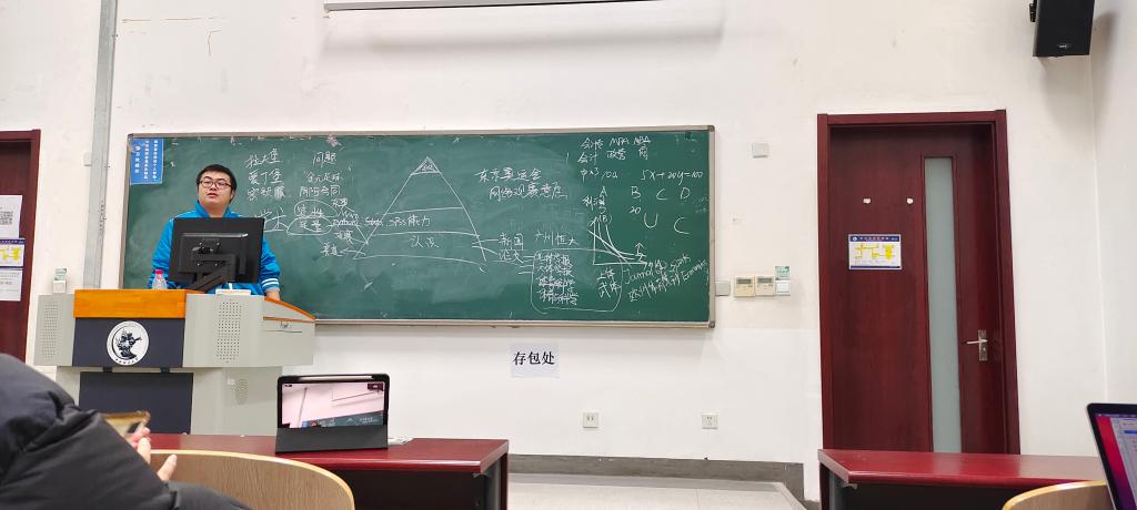 由于当前大一员工的专业知识尚不丰富,他建议期末论文写作可以侧重研究背景、研究过程和研究结论与建议这三个方面。他最后讲到,大学是一个小型的社会,在这儿不仅可以学到专业知识,更可以锻炼为人处世的本领和能力,他希望我们可以拥有一个充实的老员工活,在有限的时间内学习更多技能与本领。