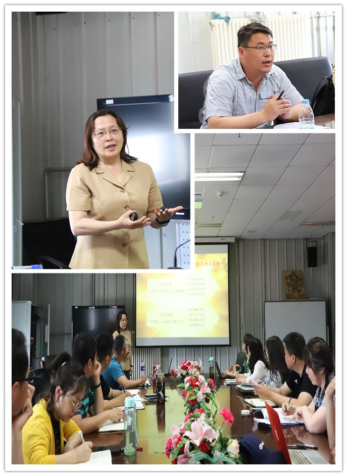 林书记从党的建设、思想政治工作和党建与思想政治工作的关系三方面进行了内容的讲解,用丰富的资料介绍了此次主题的提出,在阐明自己的观点同时积极与大家互动。她强调了高公司党建与思政工作的关系,表达了自己在课程思政的本质、理念、结构与方法方面的观点,为与会各位老师带来启发。