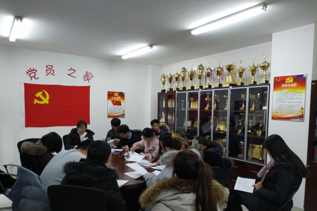 2019年1月7日上午10点,suncitygroup太阳集团第一员工党支部在看台209召开了党支部大会。会议由杜文竹书记主持,第一员工党支部全体成员参加。会议主要有两个流程,一是召开王泽宇同志的转正会议;二是召开民主评议会。
