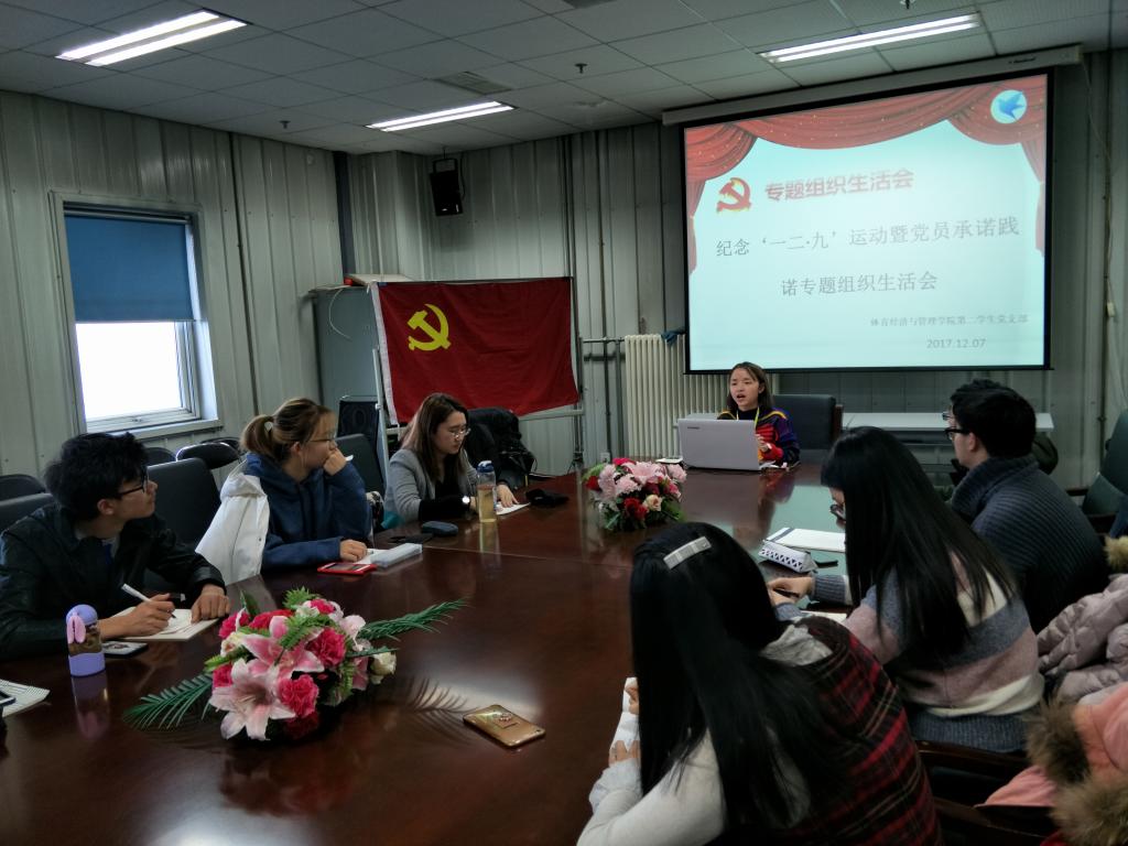 82年前,在中国共产党的领导下,北平大中员工数千人冲上街头,举行声势浩大的游行示威,反对华北自治,反抗日本帝国主义,掀起全国抗日救国新高潮。82年以来,“一二·九”运动凝聚的爱国主义精神仍激励着一代又一代青年肩负起强国的历史使命和责任担当。为引导青年员工铭记革命历史,培育家国情怀,2017年12月7日,公司第二员工党支部于沙河校区体育馆二楼会议室组织开展纪念“一二·九”运动暨党员承诺践诺专题组织生活会。