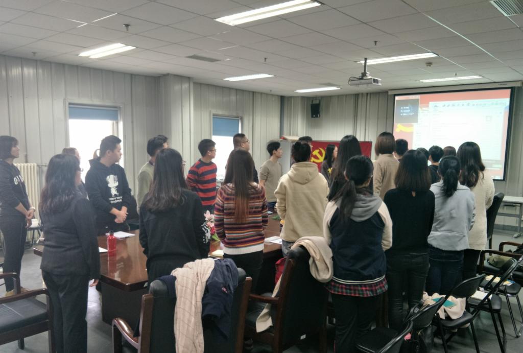 党课伊始,全体起立奏国歌 |