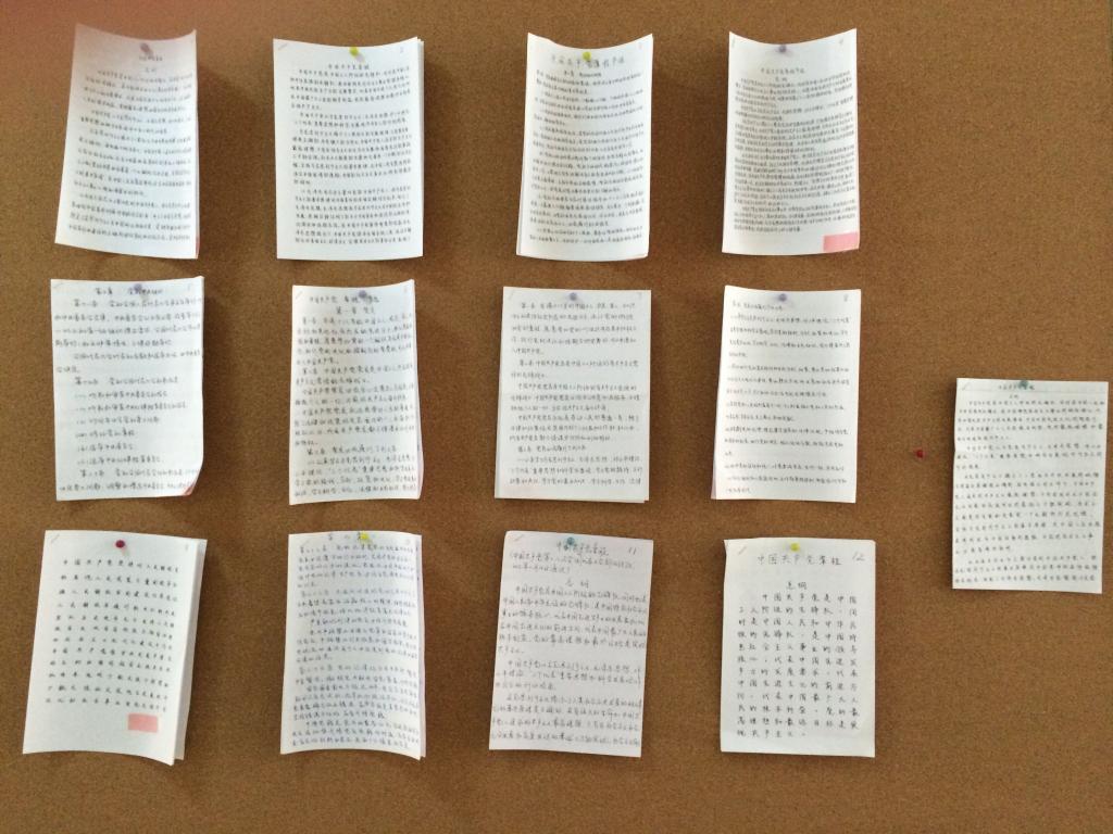随后支部对举行以庆祝建党95周年主题的抄写党章硬笔书法大赛结果进行表彰。为了庆祝建党95周年及弘扬“两学一做”学习精神,支部举办了手抄党章活动,并从中选出三张作品进行评选展示。支部各成员于6月20号上交了完成的党章硬笔书法作品,并于体育场看台二层公示栏进行了为期一周的匿名展览,由支部的发展对象和积极分子进行评审和投票。最终评选出司渊喆获得一等奖,张怡、杨婉愉、杨宁、杜文竹获得二等奖,孙禹、熊瑶、尹子頔同志获得三等奖,其他同志获参与奖。