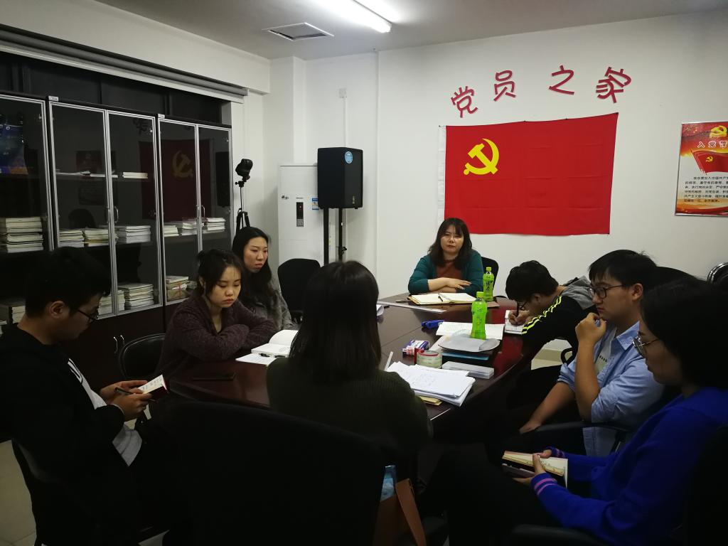 10月23日晚7点,公司第一员工党支部于看台教室开展优秀党员事迹学习会议。支部成员在书记李秋月老师的带领下,对2017-2019年度suncitygroup太阳集团优秀共产党员标兵、优秀共产党员胡庆同志的典型事迹进行了学习、交流和讨论。作为“不忘初心、牢记使命”系列教育活动的重要活动之一,同学们通过对身边先进党员事迹的学习,坚决落实“守初心、担使命、找差距、抓落实”中的“找差距”一环,将先进党员光荣事迹作为自身养料,提升自身思想政治素养。