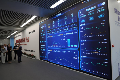 师生在讲解员的带领下,依次参观政务服务中心一层大厅展示区及各楼层服务区,在工作人员的讲解下,大家详细了解了北京市“12345接诉即办”的建设历程与运行模式。