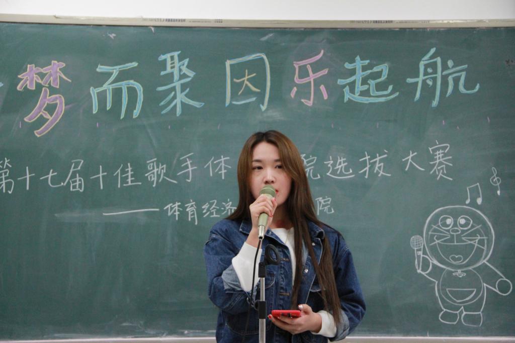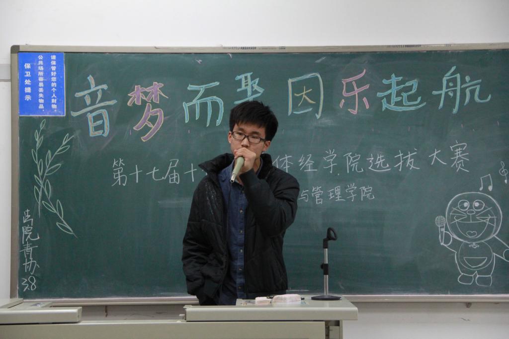 体经16-1班李凌晨同学演唱的《在雨中》拉开了选拔赛的帷幕,现场观众纷纷跟随音乐的节奏挥动双手;参赛选手张荣瑧演唱的《你还要我怎样》,更是将现场的气氛推到了高潮,同学们在场下不由得轻声跟唱;随着体经15-1班曾伟竞演歌曲《我们的歌》演唱完毕,比赛宣布结束。