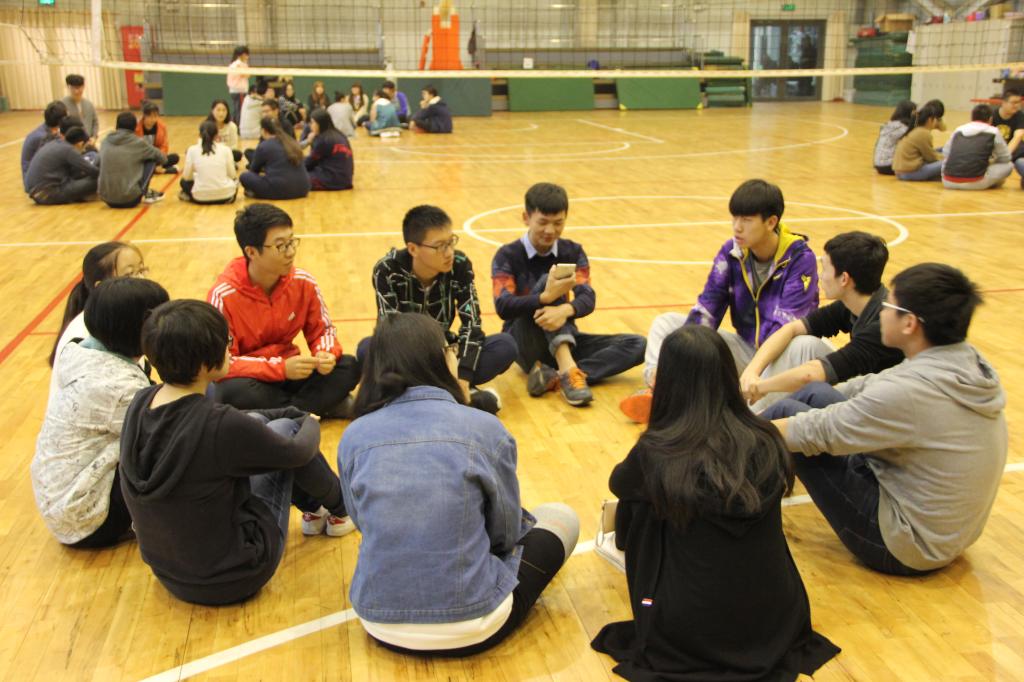 随着素拓主持人幽默风趣的自我介绍,破冰活动正式开始。首先,主持人用 “厉害了主持人”六个字为主题将同学们分为了六个小组,每组由一名素拓培训师带领,组员们面对彼此、围坐一圈,通过数字传递等小游戏进行了初步的认识和了解。