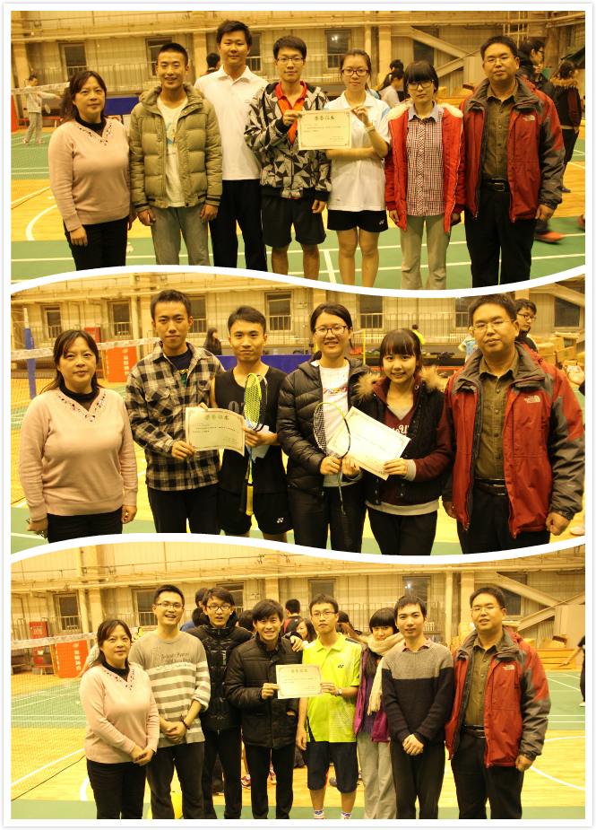 这次比赛为团体赛,在预赛阶段采取三局两胜11分制,决赛阶段则采取五局三胜21分制。在预赛阶段,ABCD四组采取组内单循环制,依据积分排名前两名决定晋级。决赛阶段,采取交叉淘汰的方法决出三甲。因此,要获得比赛的胜利,不仅需要参赛者强大的个人能力,还需要出色的团队配合,战略战术安排,英明的战术安排甚至能做到田忌赛马以弱胜强的效果。赛场上,各参赛队员深刻贯彻“赛出风采,羽乐同行”的比赛宗旨,以迅猛的攻击配上灵巧的步伐,伴随洁白的羽毛球在网的两边飞舞,时快时慢,时高时低,场外阵阵惊呼喝彩排山倒海而来,场内选手却目光沉毅,全神贯注于比赛中,丝毫不为外物所动。经过10个比赛日的激烈角逐,统计与数学公司,中国公共财政与政策研究院与外国语公司的合队,管理科学与工程公司依次摘得前三甲。