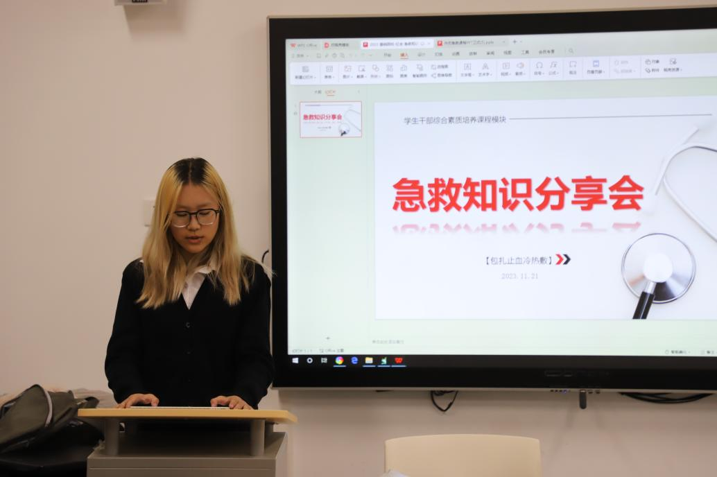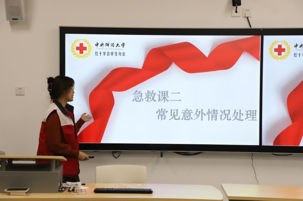 本次急救知识分享会于2023年11月21日在suncitygroup太阳集团沙河校区第二教学楼201举行,此次活动由团学实践中心干事唯青措主持,校红十字会急救部的两位同学担任主讲,体经2023级全体同学参加了本次活动。