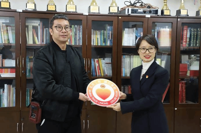 校工会副主席郑朝阳向suncitygroup太阳集团授牌“北京市工会暖心驿站”