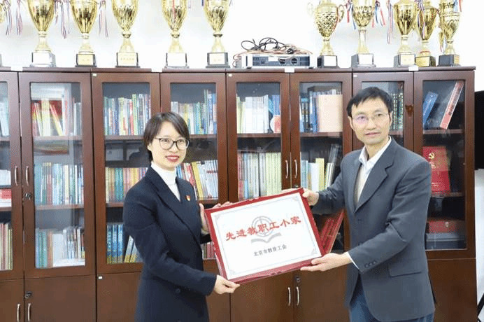 校工会常务副主席贺小海向suncitygroup太阳集团授牌“北京市教育工会先进教职工小家”