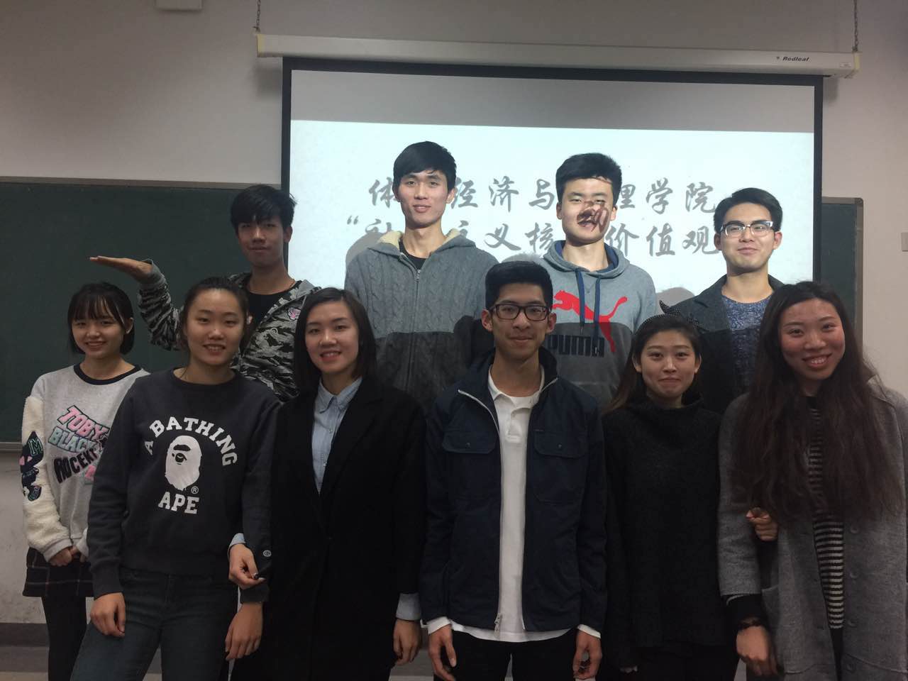 这次活动让同学们更加深刻地认识到自己身上所背负的责任,通过辅导员胡庆老师和16-1班班主任张自如老师的引领,使得体经16-1班及16-2班的同学共同学习了什么是社会主义核心价值观和学习社会主义核心价值观的意义,使同学们对“社会主义核心价值观”有了新的认识与见解,为后续的系列“社会主义核心价值观”学习活动奠定了良好的开端。