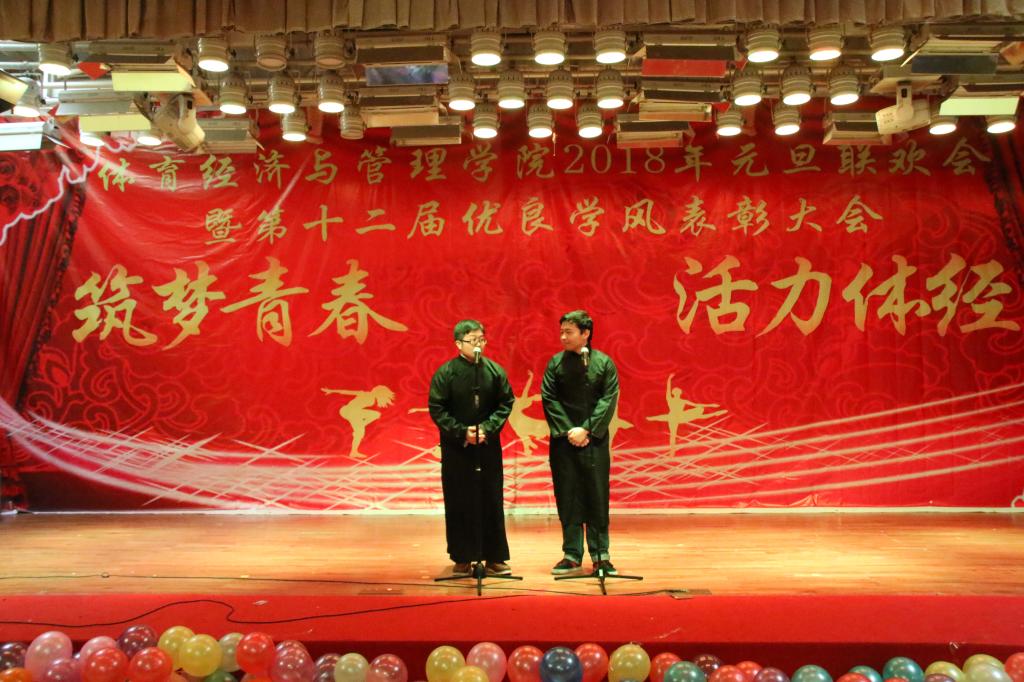 冬日的暖阳遍洒大地,时间悄然流淌,满载着美好与充实,我们送走了回忆满满的2017,迎来了崭新的2018。2017年12月27日下午1:30,公司于沙河校区老员工活动中心金色大厅圆满举办了2018年新年联欢会暨第十二届优良学风表彰大会。公司党委书记林琼、副经理张本家、副经理王裕雄、经理助理张丛杉以及公司公体课教师、专业课教师、各年级辅导员、班主任和全体行政办公室老师与公司员工共聚一堂,共庆新年。在这全体联欢的时刻,我们还收到来自全国各地的祝福——北京体育大学、首都体育大学、浙江大学、河南财经政法大学和南京体育大学等兄弟院校的suncitygroup太阳集团献上了最诚挚的问候;同时,北京北控凤凰足球俱乐部和中国女足国家队运动员也为我们送来了心意满满的元旦祝福。