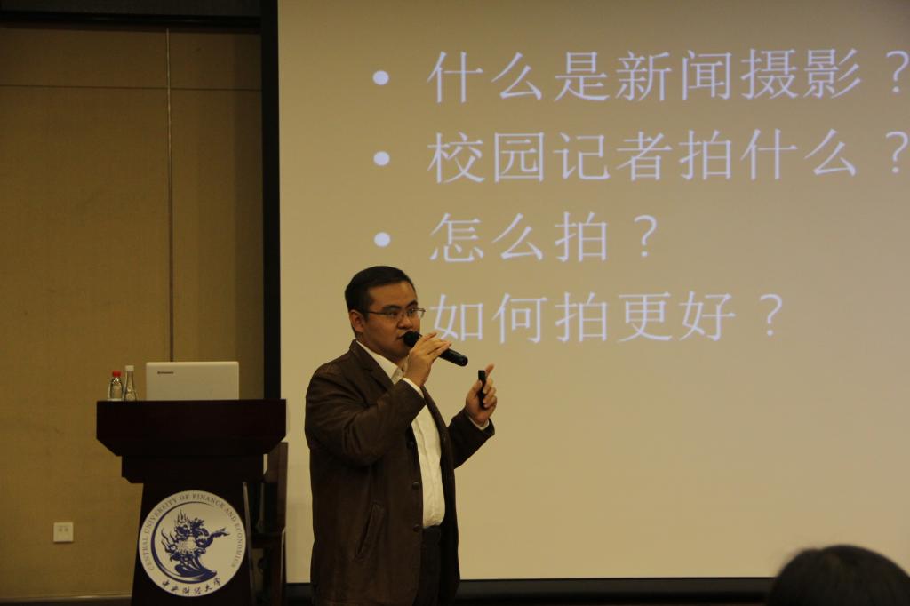 培训分为两个板块依次进行。第一板块的新闻摄影由公司党委宣传部刘禹老师主讲。培训伊始,刘老师明确指出新闻摄影和摄影并不相同,“新闻摄影,拍到比拍好更重要”刘老师说道,“新闻摄影关键在新闻意识、新闻主题,构图和稀性。”紧接着,刘禹老师从校园新闻摄影“拍什么”,“怎么拍更好”两个方面细致的讲解了在会议、活动、舞台以及合影等常见拍摄场景的拍摄要点、构图技巧以及注意事项。