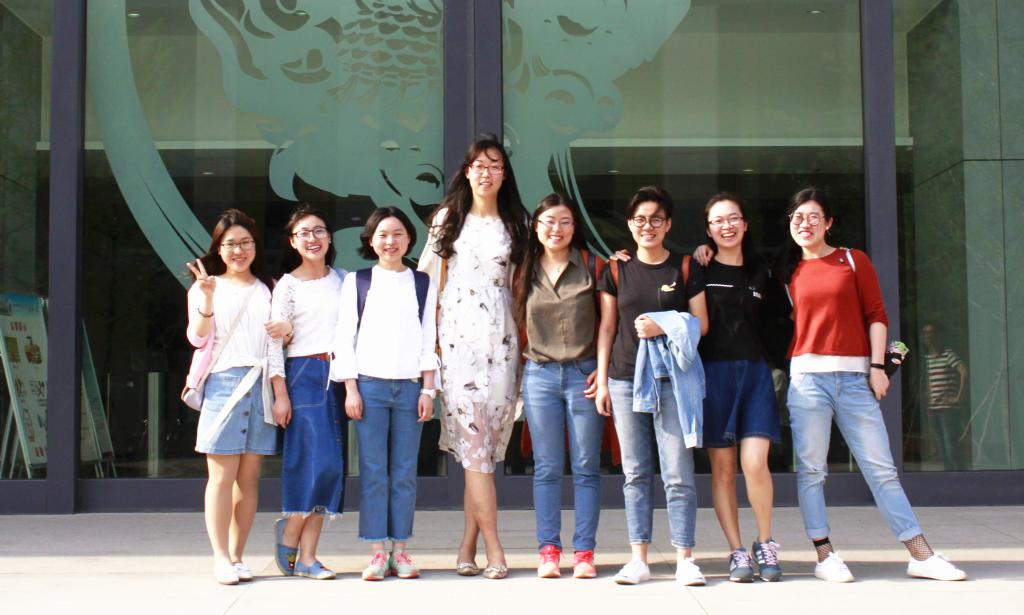 午饭结束后,员工们在三位同学的带领下参观了校园。首先参观的是近年来新建的图书馆骋望楼。在图书馆前气势恢宏的校徽下留下了珍贵的合影留念后,一行人进入图书馆,依次参观了阅读区、报纸阅读区、多媒体阅览室、休闲阅读区、研讨室、报告厅和展厅等。在参观的过程中,员工们都注意到了图书馆中浓厚的学习氛围和同学们饱满的学习热情,并且惊叹于图书馆丰富的学习资源和先进的管理方式。对此,员工们啧啧赞叹,在点赞的同时,他们都想到了当年自己在图书馆挥汗学习的场景,羡慕之情油然而生。