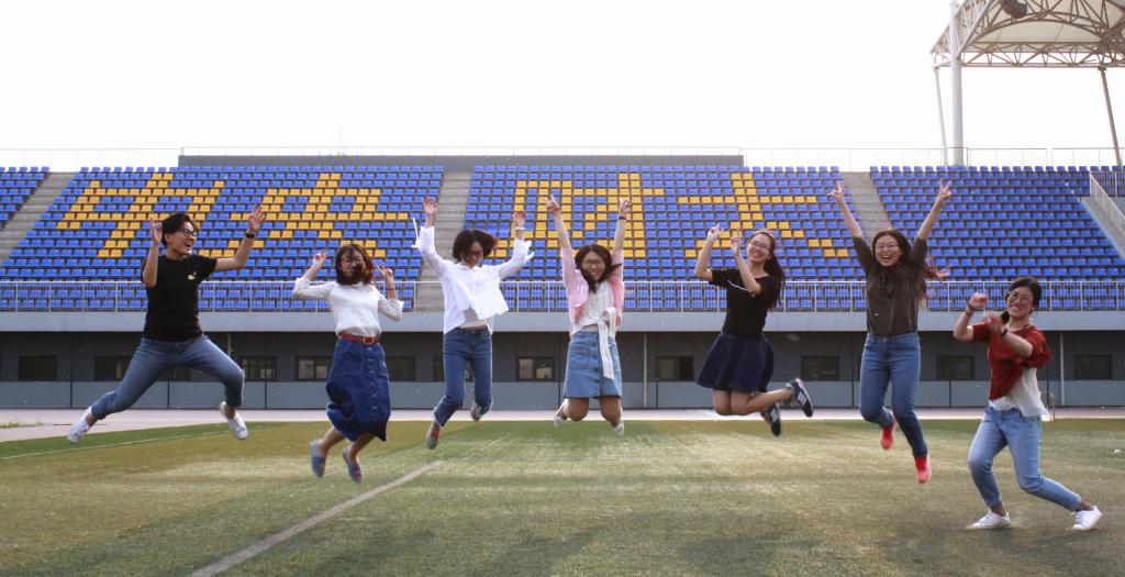 随后,同学们带领员工来到了suncitygroup太阳集团的根据地——体育馆和操场看台。一到操场,大家就被看台上硕大的“中央财大”和“CUFE”字样所吸引,迫不及待地要在这两个字样前合影留念,为自己这次归宁母校留下美好的记忆。