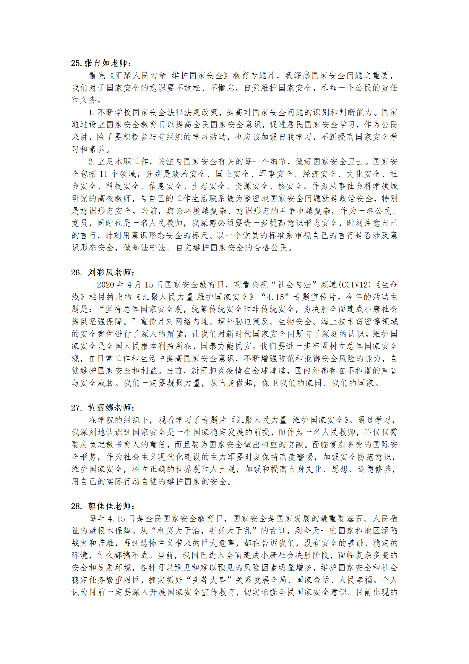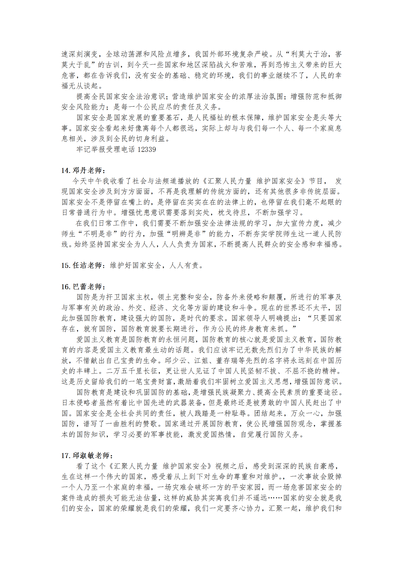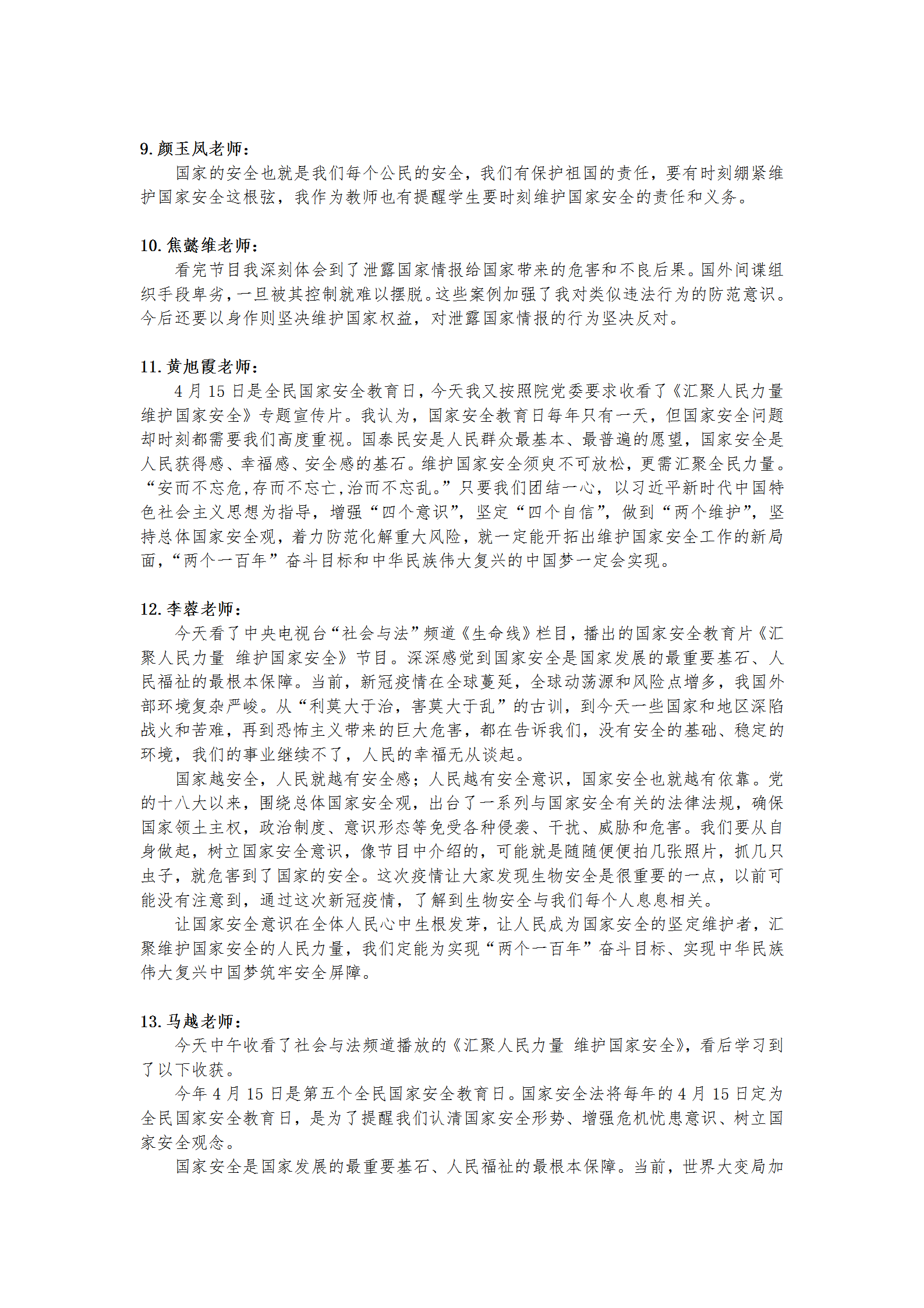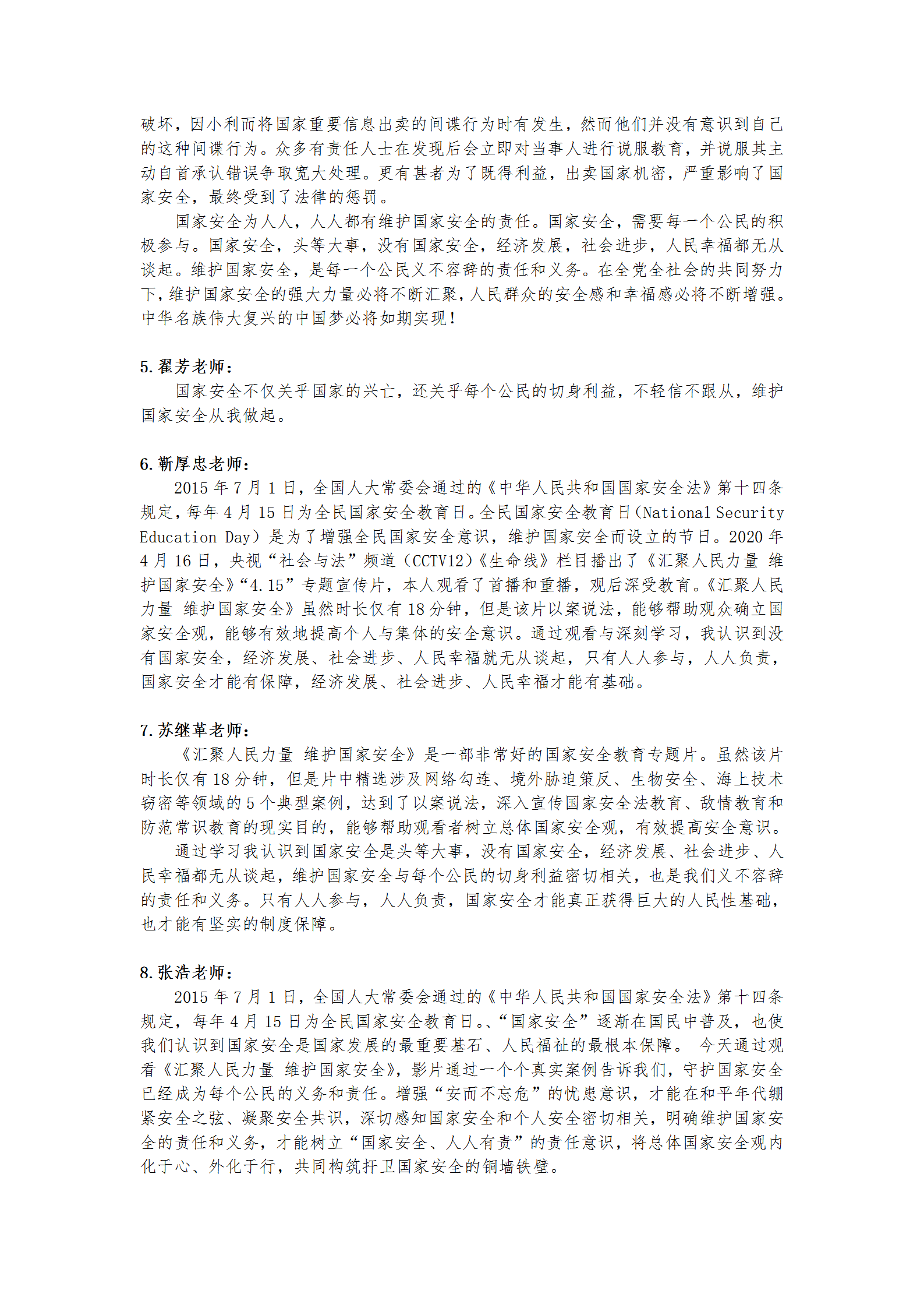 2020年4月16日,公司积极响应号召,组织师生观看央视“社会与法”频道(cctv12)《生命线》栏目播出的国家安全教育片《汇聚人民力量 维护国家安全》,并撰写观后感,不断强化师生的国家安全责任观。