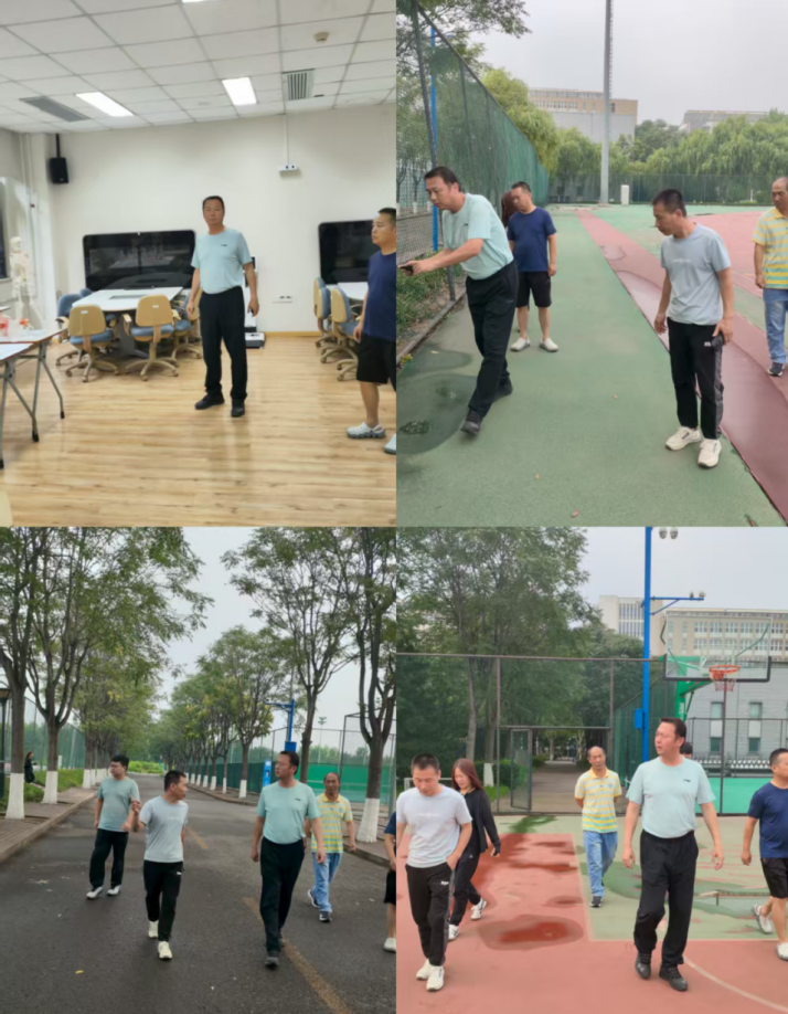 在公司南路校区检查中,发现篮球架底座生锈、足球场和田径场凹陷、配电室屋顶漏洞等问题,王副经理要求工作人员要及时上报进行整改;在沙河校区,重点检查了运动场地及实验室,发现田径场围栏存在倾斜等问题,现场就协调基建处进行解决。