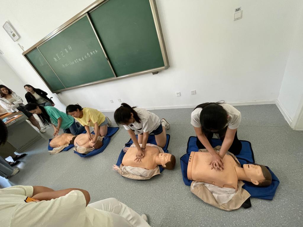 培训课程包括心肺复苏(CPR)和自动体外除颤器(AED)的使用,分为理论教学和实践操作两个部分。课程伊始,红十字会的培训师向师生介绍了心搏骤停的定义,并强调尽早进行心肺复苏是急救中至关重要的一环。随后,培训师们就心肺复苏的操作流程和AED的使用方法和步骤向学员们进行了理论知识的讲解,同时介绍了高质量心肺复苏的标准、心肺复苏的终止条件以及儿童、婴儿与成人心肺复苏操作流程上的差别,还重点强调了AED使用过程中的注意事项。