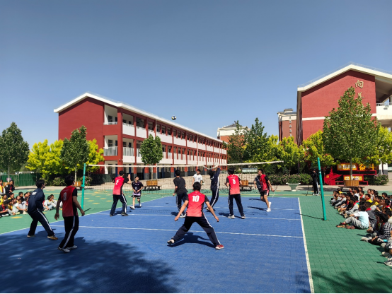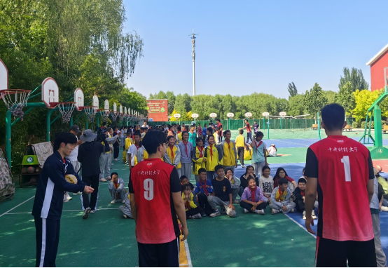 接下来,中财的排球队员们来到了青铜峡市第六小学的体育场为同学们呈现了一场排球表演赛。在表演赛中球员们的精彩串联让人目不暇接,一记记全力起跳的扣杀引得员工们一阵阵欢呼,防守与救球也让观众们直呼过瘾。队员们与员工们积极互动,加油声此起彼伏,员工们的热情如同这似火骄阳一般高涨。这场激烈的表演赛不但传播了排球的乐趣,更展示了体育运动的魅力。